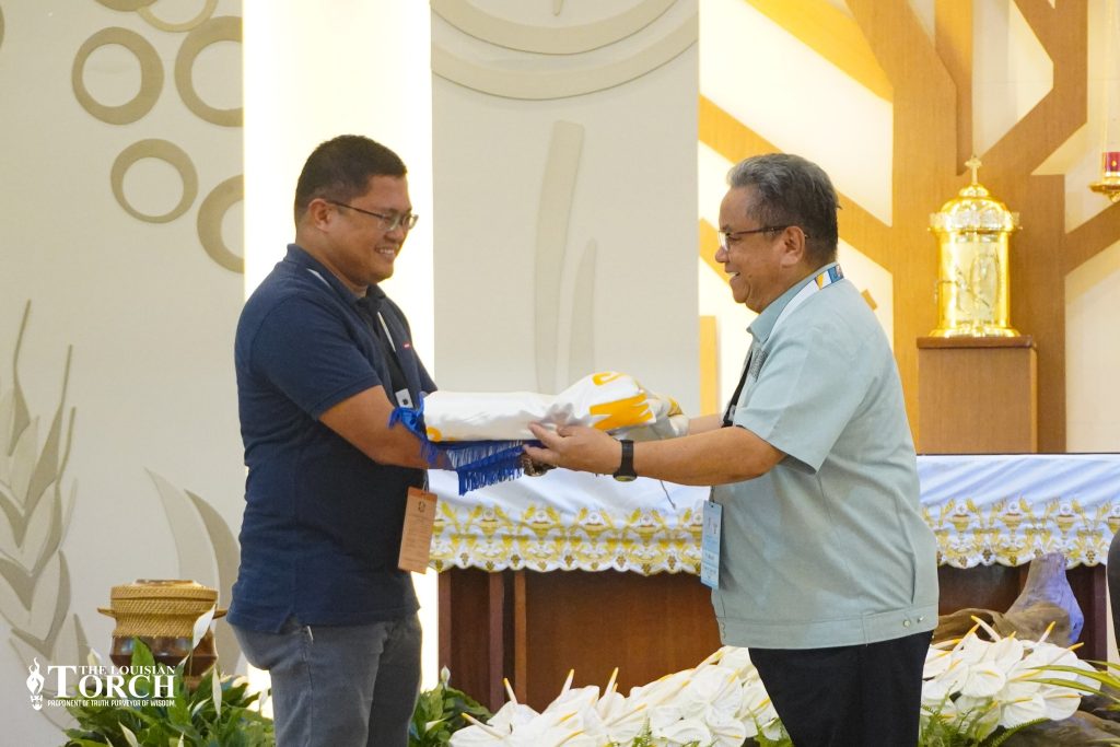 Fr. Caluza, SLC President, passed on the CICM-PSN flag to Rev. Fr. Macwayne F. Maniwang, University of Saint Luis-Tuguegarao President, as they will host the network’s general assembly for the following year.